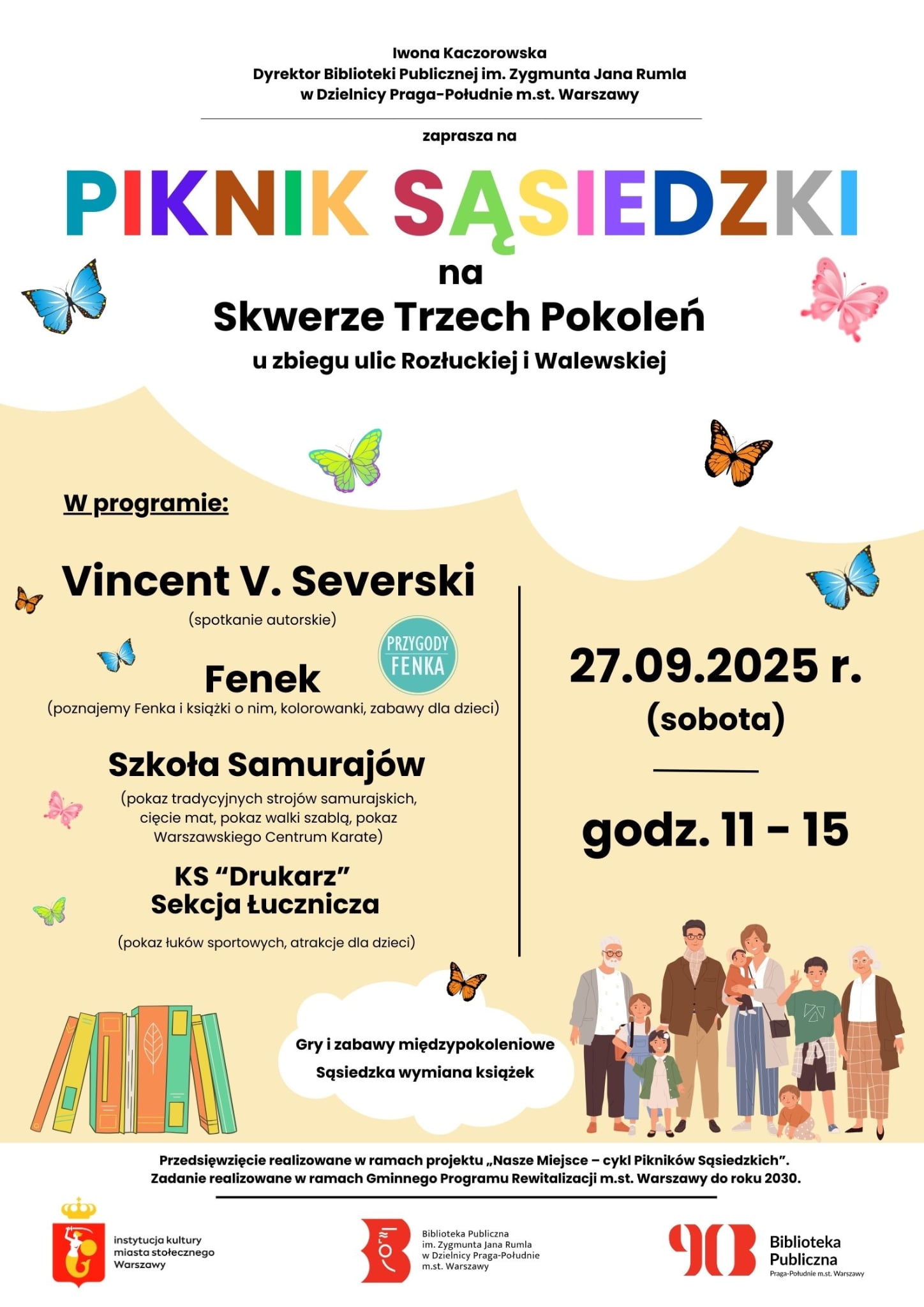 W najbliższą sobotę, 27 września br. w ramach Gminnego Programu Rewitalizacji Warszawy na Skwerze Trzech Pokoleń (między ulicami: Walewska i Suchodolska na Grochowie) odbędzie się Piknik Sąsiedzki. A na nim mnóstwo atrakcji. Wystąpią m.in. sekcja łucznicza „Drukarza”, Szkoła Samurajów, Spochan Polska i Warszawskie Centrum Karate.