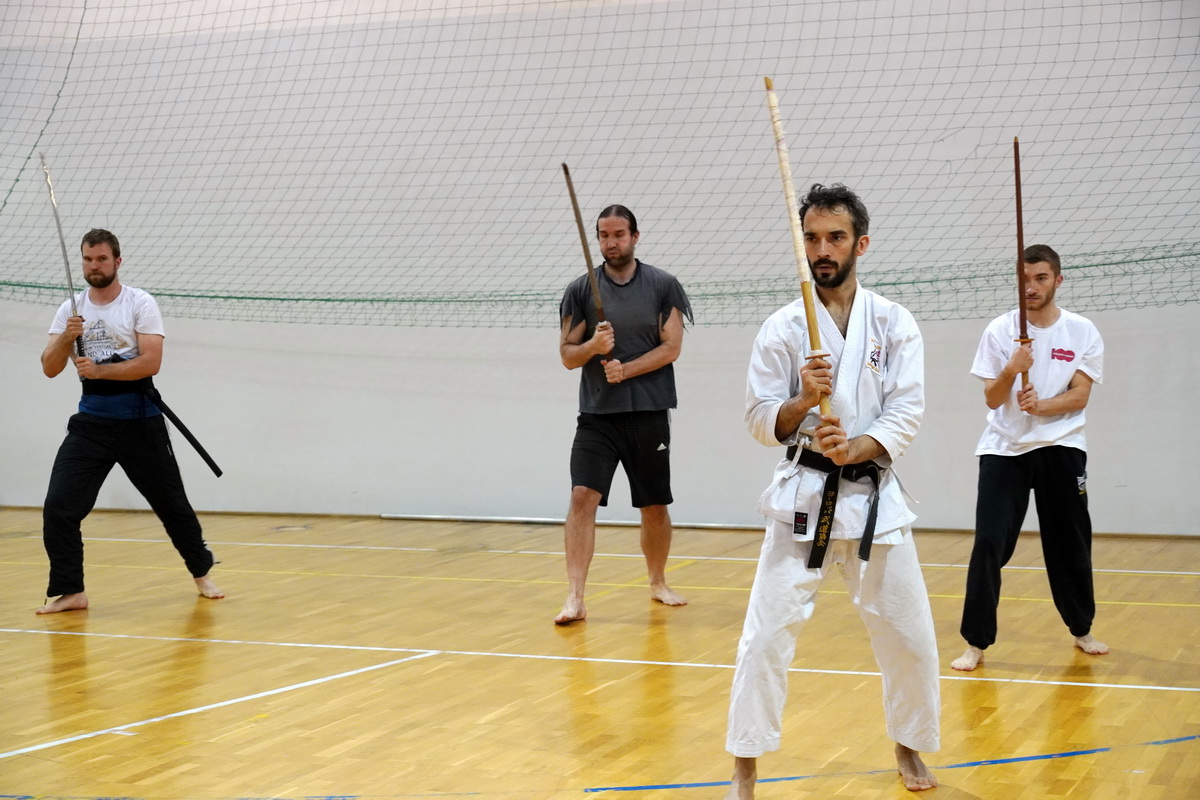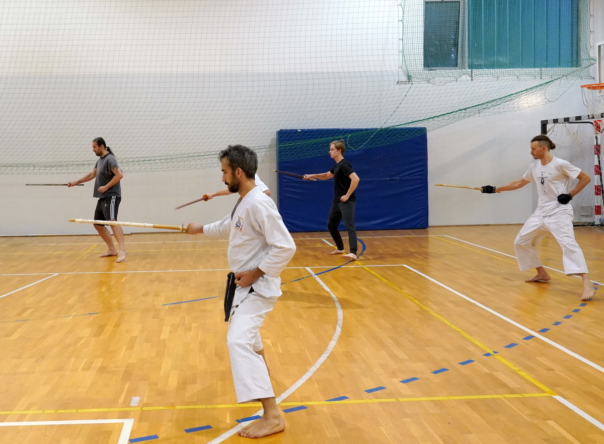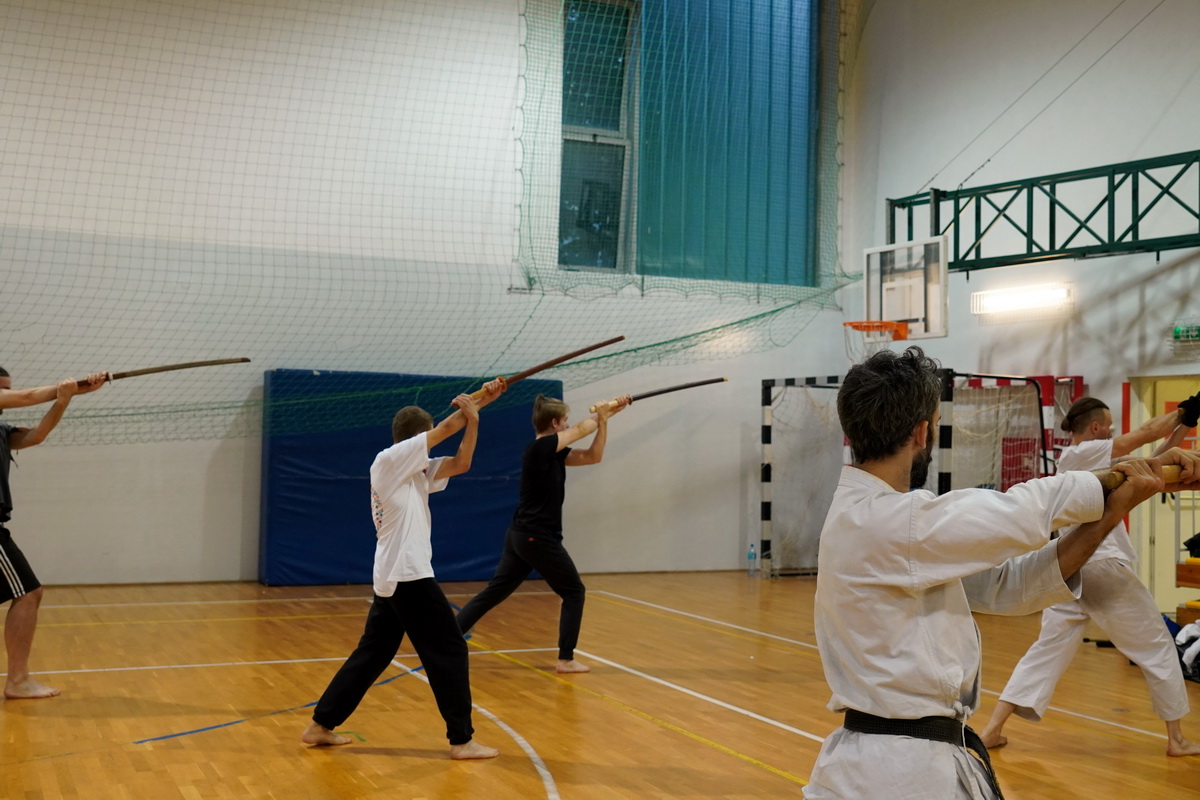 Dzięki Europejskiemu Stowarzyszeniu Budo przez cały lipiec w czwartki na Saskiej Kępie odbywały się treningi szermierki samurajskiej, które prowadził shihan Michał Piotrkowicz 5. dan battodo, 5. dan chanbara. Obok ćwiczeń formalnych długim i krótkim mieczem sporo było dynamicznych sparingów miękką, elastyczną bronią – spochan. Na ostatnich zajęciach hanshi Tomasz Piotrkowicz 7. dan battodo, 5. dan chanbara podziękował uczestnikom za poniesiony trud i wytrwałość.